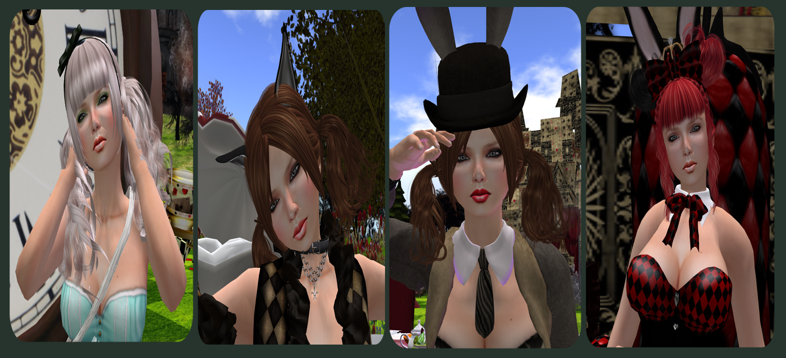 Como a mi me gusta un disfraz con locura esta caza imaginareis me ha encantado, explico un poco de que trata y os enseño fotos de los regalitos, bueno comienzo la caceria trata de persegir conejos en un sim ambientado en el cuento de Alicia en el pais de las maravillas, los conejitos a cada rato sueltan unos tickets tienes que darle a comprar y cogerlos estos tickets los podras cambiar luego por los regalos en cada tienda, hay 26 en total y uno dorado que te sirve por si te falta alguno, los tickets son trans y los puedes cambiar con otras personas que estan cazando en el lugar el blog oficial de la cacecía es este